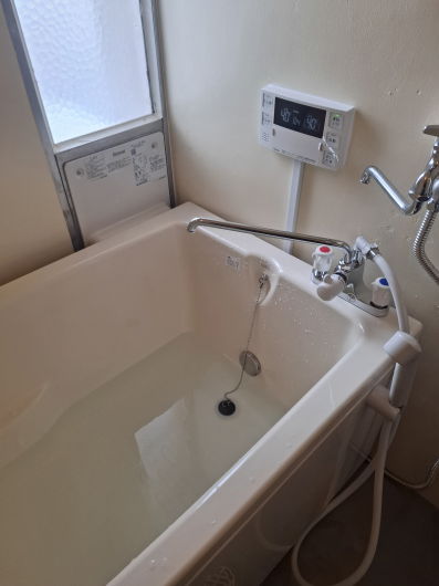 施工後:リンナイ製壁貫通型ガス給湯器とリクシル製浴槽
