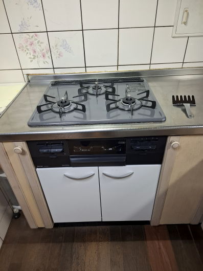 施工後:リンナイ製ビルトインコンロ メタルトップ+キャビネット