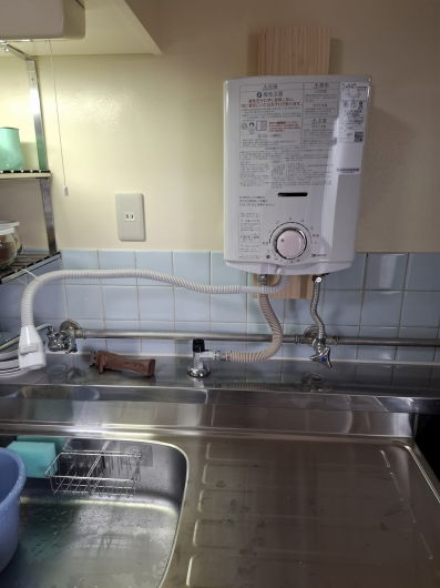 県営住宅に入居されガス小型湯沸かし器GQ-551MWの取付