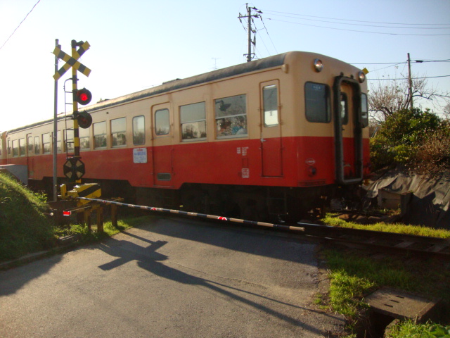 しばらく走ると小湊鉄道の踏切で、思わずパチリ!