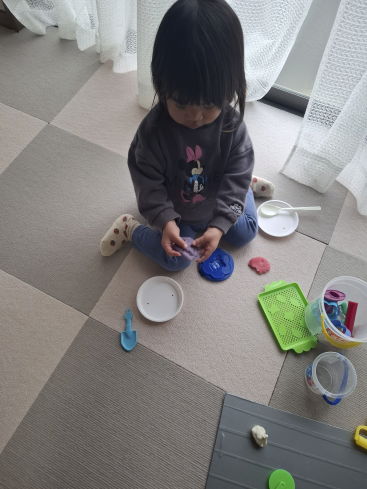 帰ってきてから、自分でおやつ作りです・・・粘土でクッキーを作っているそうです