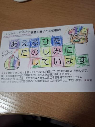二番目の孫の幼稚園で「敬老の集い」が行われるから来てね(^_-)-☆とハガキが届きました!
