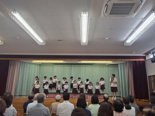 私の座っている所は、どうもエアコンの風がちょうど当たる所で寒くて我慢できず、孫の出番が終わった所で園庭に避難しました(*_*;