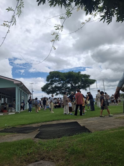 暫くしてすべての発表会が終わり、みんな外に出てきて、先生から配られたシャボン玉で遊んでいました。