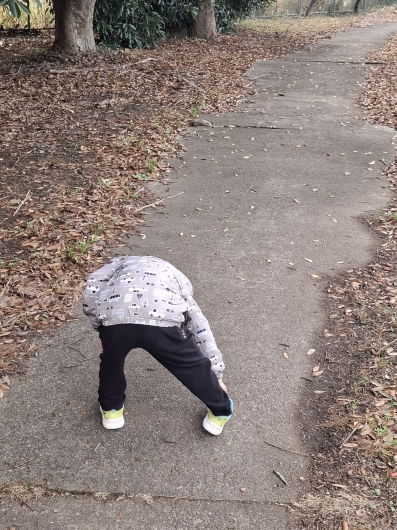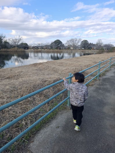 普段、歩かない池の外周道路は木の枝や枯れた草が多く、孫はちょっと怖いようです(>_<)
