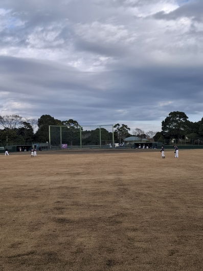 草野球チームでしょうか?ユニフォームを着た選手がグランドいっぱに練習をしているのが見えました!
