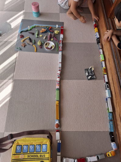 トミカも並べ始め、渋滞の始まりです!
