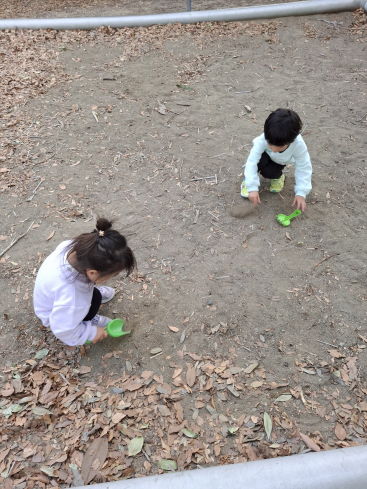しこたま走り回った二人は、コートを脱いで、砂の山作成に