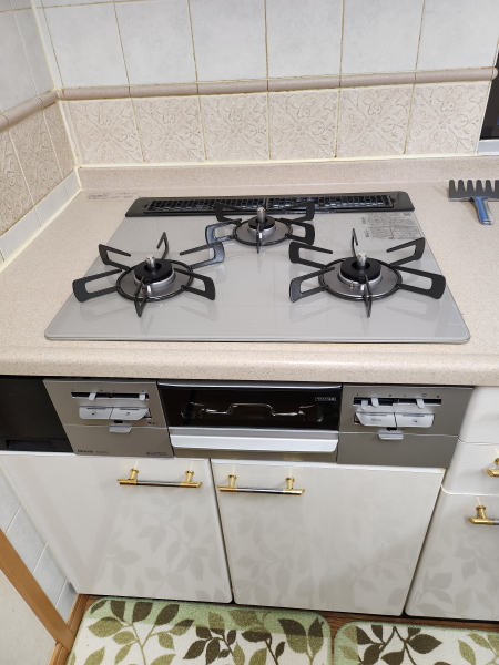 リンナイ製ビルトインガスコンロメタルトップからガラストップRS31W36T2RVWへ取替