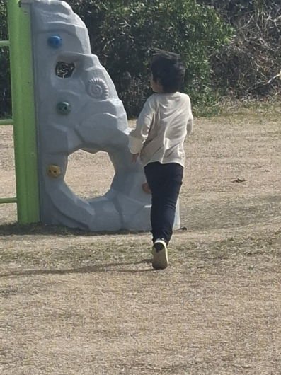 強風の中走り回り、お決まりの滑り台、シャボン玉、ブランコと一通り遊んで、用意した水筒をごくごくと喉を鳴らして水を飲み、今度はボールで・・・