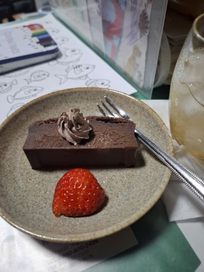 ケーキの材料になって、しかもカミさんと娘の合作「テリーヌ・ショコラ」が食後のデザートとして登場(^^)/