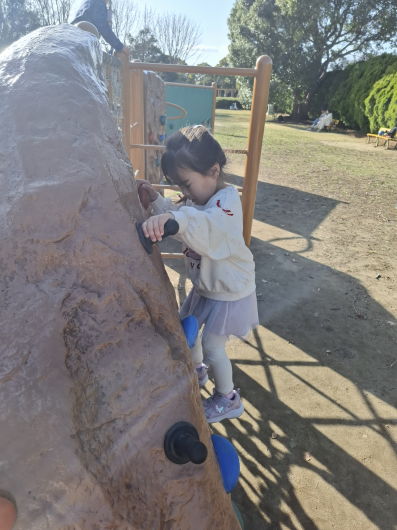 遊具がある場所に着くと、さっそくロッククライミング擬きを始め