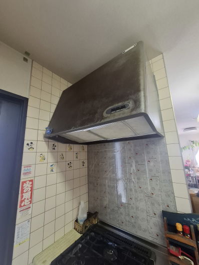 クリナップ製レンジフードからリンナイ製レンジフードTLR-3S-AP902BKへ取替